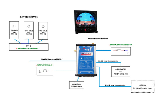 Since the system works with trim tabs, auto-trim is built into the iLevil AP. No additional installation is required. The airplane will always be in trim following autopilot disconnection